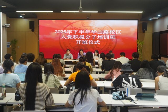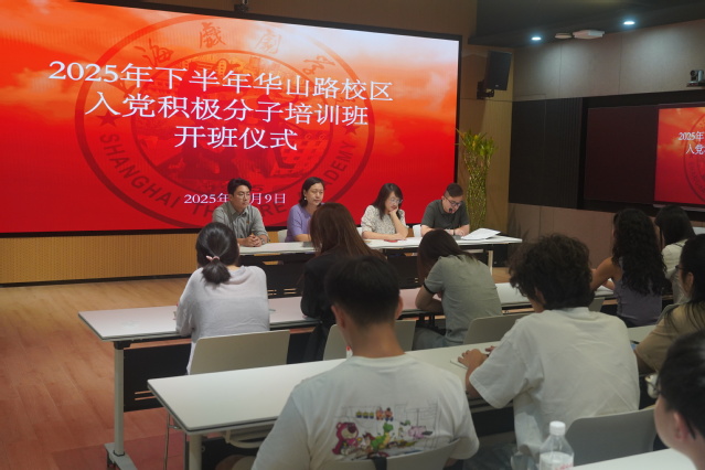 2025年10月9日,上海戏剧学院2025年下半年入党积极分子培训班开班仪式在华山路校区智慧教室举行。本次培训班由表演系(含音乐剧中心)党总支牵头主办,联合导演系、戏剧文学系、舞台美术系共同组织,并协调电影学院、艺术科技与管理学院同步参与,实现了跨校区联动培养。本次开班仪式由表演系(含音乐剧中心)党总支副书记夏逸石主持,导演系党总支书记尹悦蓉,戏文系党总支副书记、副主任陈莹,艺术科技与管理学院党总支副书记薛嘉,各院系学生党支部书记、副书记、辅导员老师们以及来自华山路校区的30位学员和昌林路校区的13位学员共同参加。